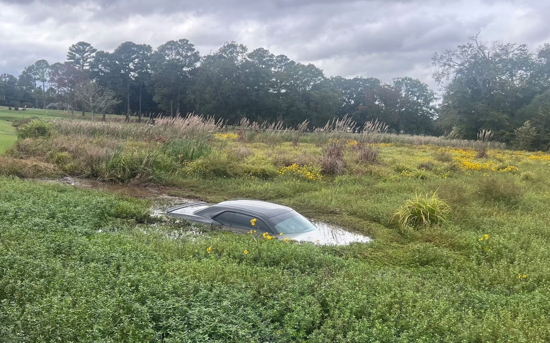 Decatur cops say a guy named Lucky had anything but good fortune after a wild police chase that finished with a stolen Dodge Challenger belly-flopping into a golf course pond.