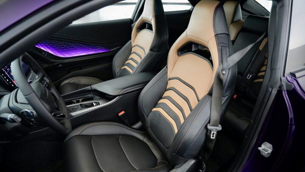 Inside, it’s a leather-clad love letter to muscle fanatics—Tuscany Ink and Palomino hides stitched with orange and purple threads, mirroring the car’s wicked exterior. Practical? Sure, with Mopar’s heavy-duty mats and pedal covers, but nobody’s fooled. This cabin’s built for drivers who want luxury without losing an ounce of attitude.