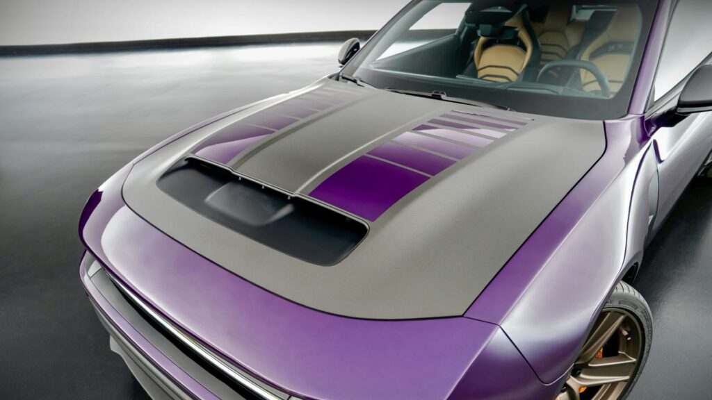 Drenched in Stryker Purple—a hue stolen straight from the Viper’s playbook—this beast turns heads before it even growls. Carbon fiber slathered on the hood, splitter, and spoiler isn’t just for show; it slicks down airflow and shaves pounds like a street fighter on a crash diet. Throw in retro strobe graphics and flared fenders, and you’ve got a machine that looks like it’s itching for a brawl.