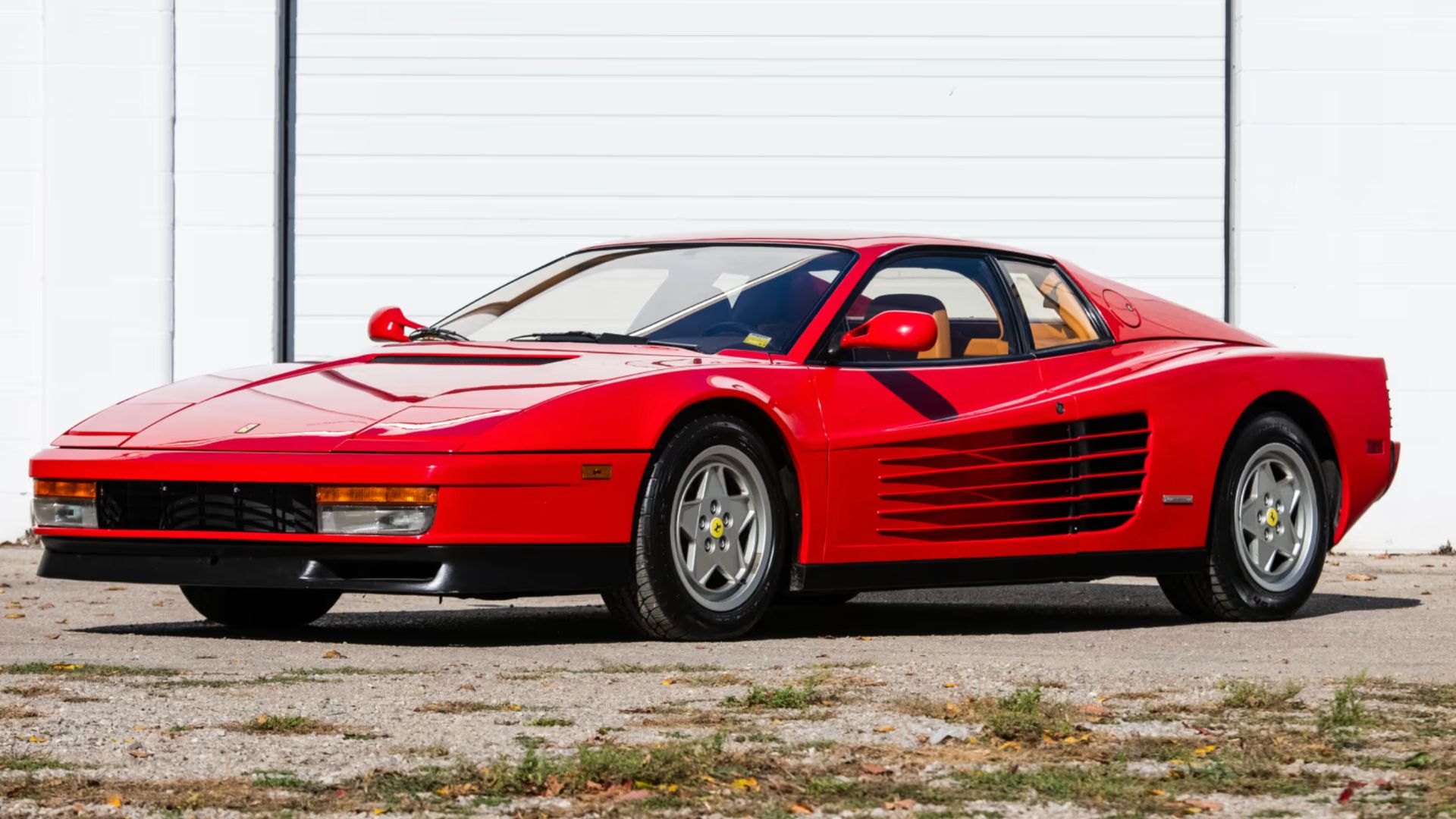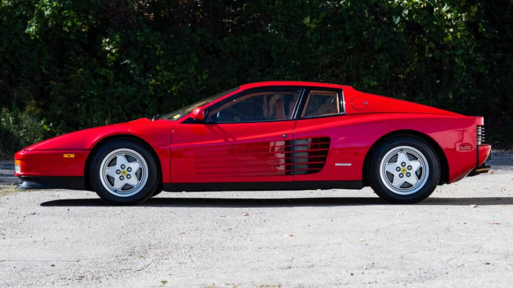 On the opposite end of the spectrum sits a 1991 Ferrari Testarossa, arguably the definitive silhouette of late-’80s and early-’90s exotic culture. Dressed in Rosso over Tan Connolly leather, it features a 4.9-liter flat-12 paired with a 5-speed gated manual and limited-slip differential. This car benefits from a recent major service covering belts, ignition components, pumps, filters, and sensors—critical items for Testarossa ownership. Pininfarina styling, pop-up headlights, and 5-spoke alloys complete the look that made the TR a cultural phenomenon.