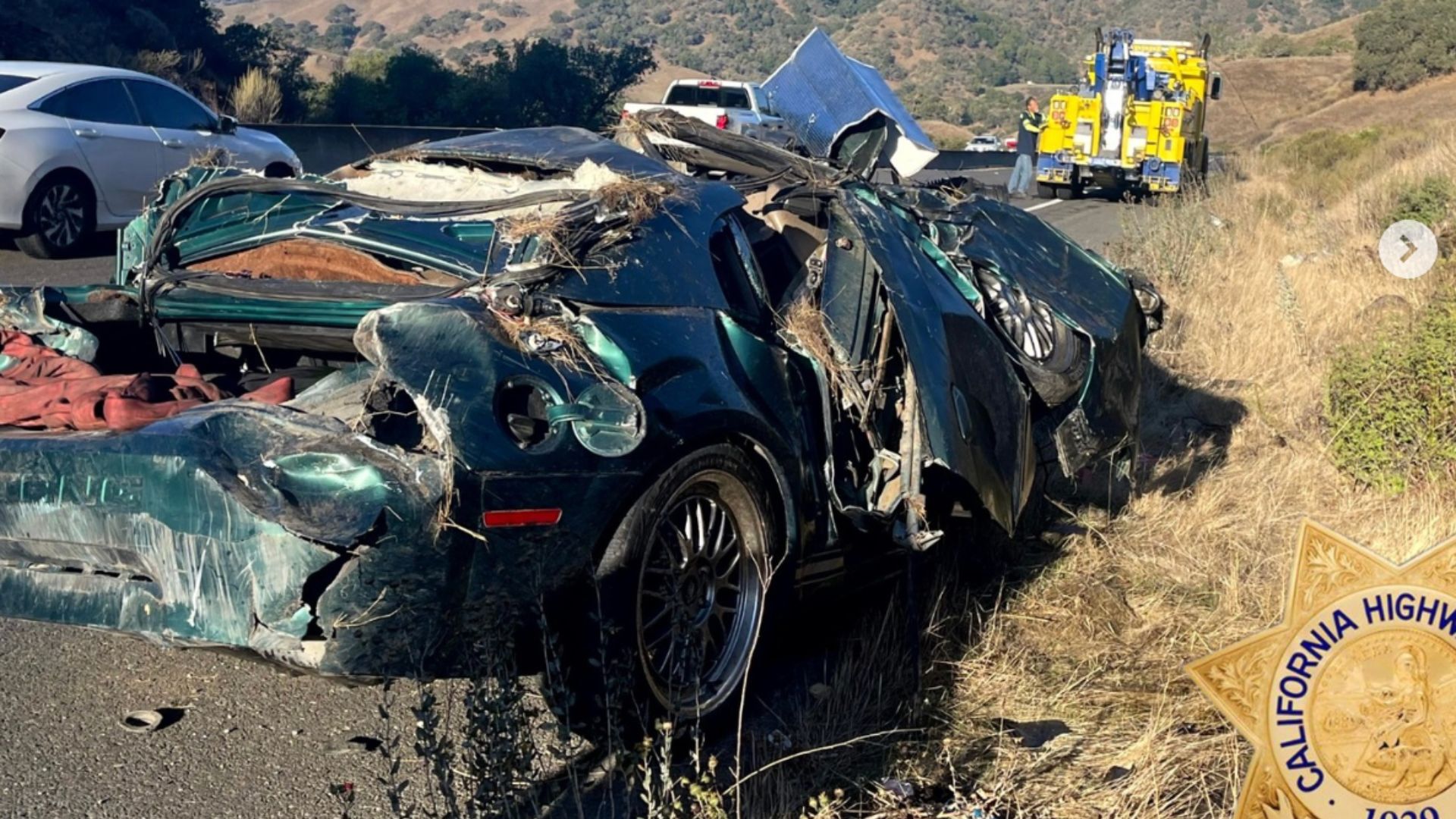 The wreckage temporarily disrupted traffic along the westbound lanes as emergency crews worked to clear debris and secure the area for investigators. The damaged vehicle was eventually removed, allowing traffic to move normally again.