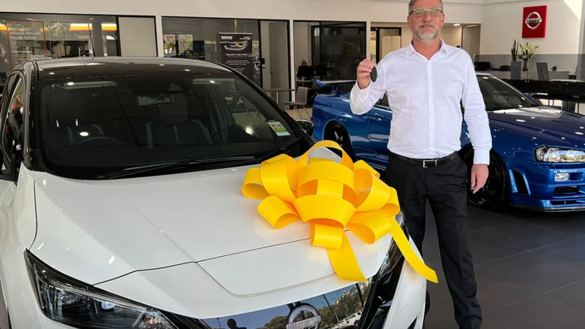 According to the dealership, a customer identified as Barry exchanged his Nissan R34 GT-R V-Spec II for a new fully electric Nissan Leaf in a straight trade, with no additional money changing hands. The dealership said the decision was driven by rising fuel prices, which made continued ownership of the high-performance sports car impractical for the customer.