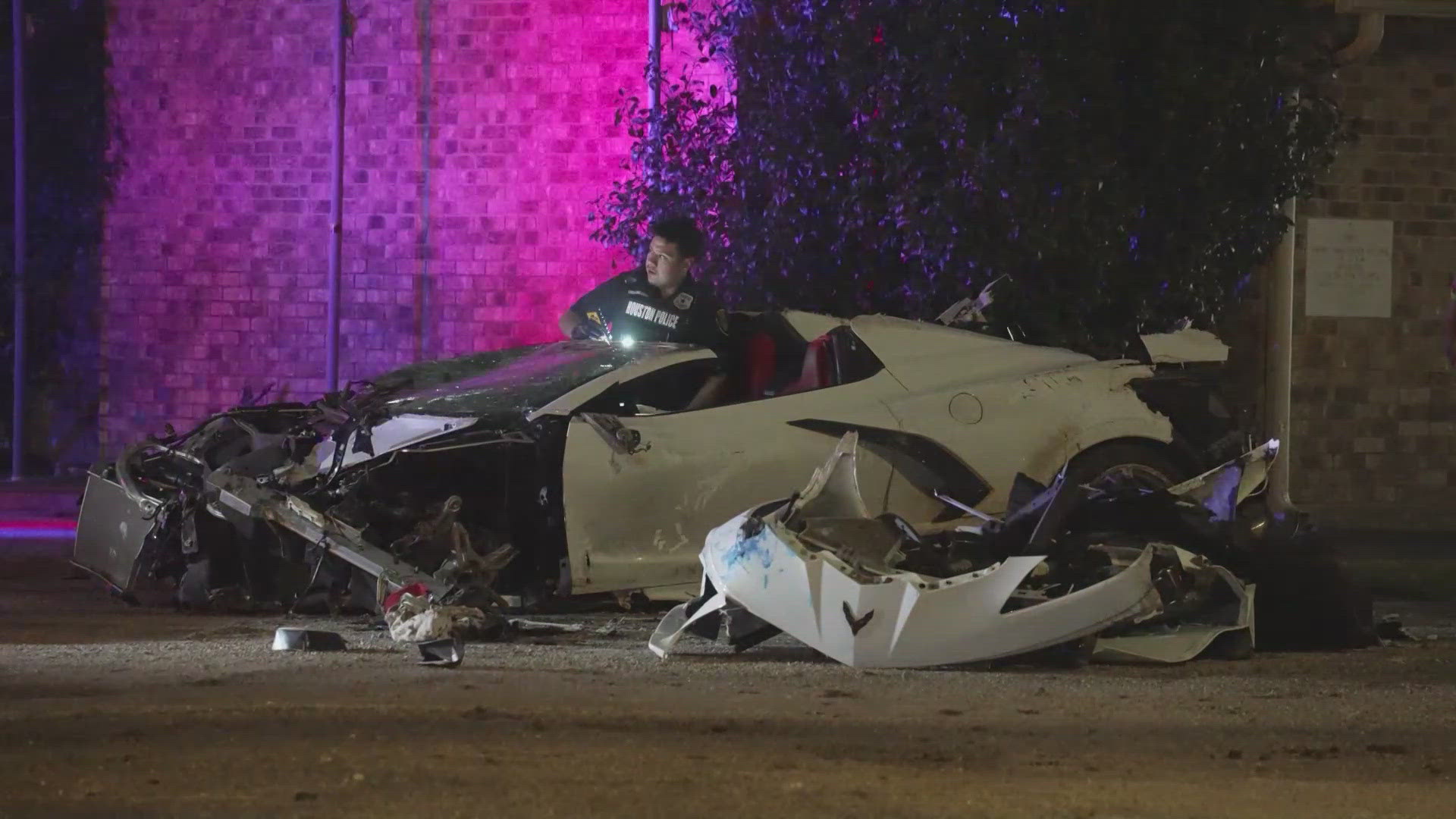 The crash happened at approximately 2:09 a.m. along West Little York Road, just west of Antoine Drive. According to Houston police, patrol officers initially spotted the Corvette running red lights and traveling at high speeds on West Montgomery Road. When officers attempted a traffic stop, the driver accelerated instead of pulling over, prompting a pursuit.