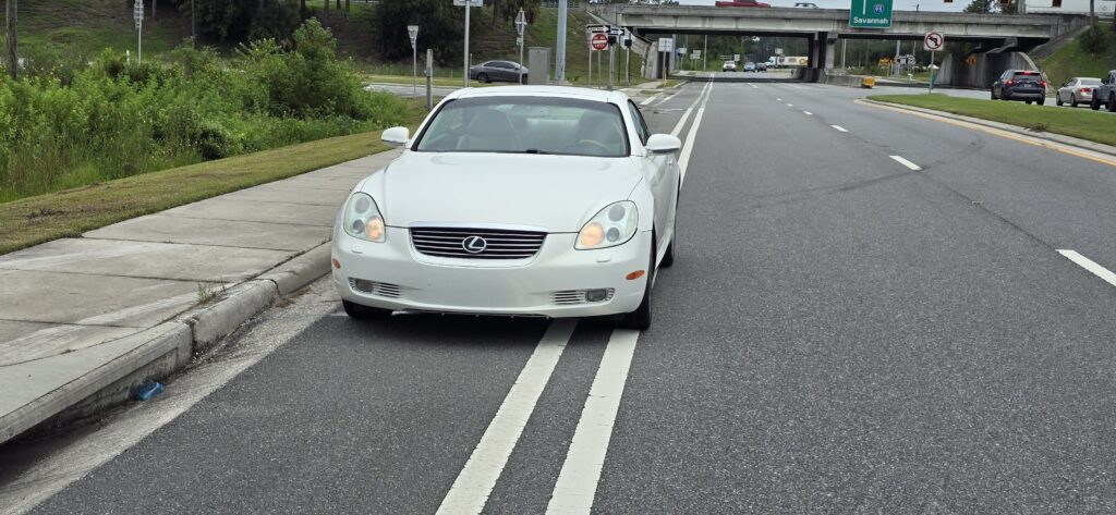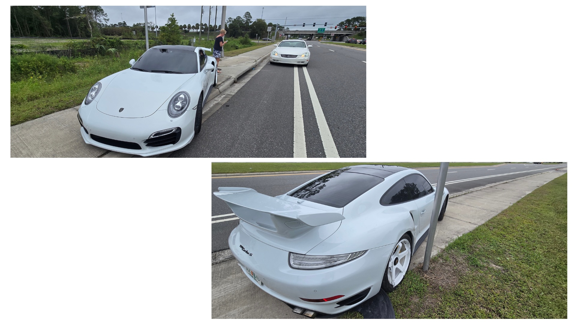 According to the driver’s account, a Lexus exiting I-95 failed to yield and continued merging across lanes without signaling. In an attempt to avoid it, the Porsche moved from the right lane into the left, but the other driver kept coming.
